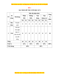 MA TRẬN ĐỀ THI CUỐI HỌC KỲ I