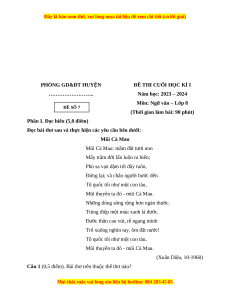Câu 1 (0,5 điểm). Bài thơ trên thuộc thể thơ nào?