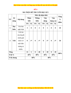 MA TRẬN ĐỀ THI CUỐI HỌC KÌ I