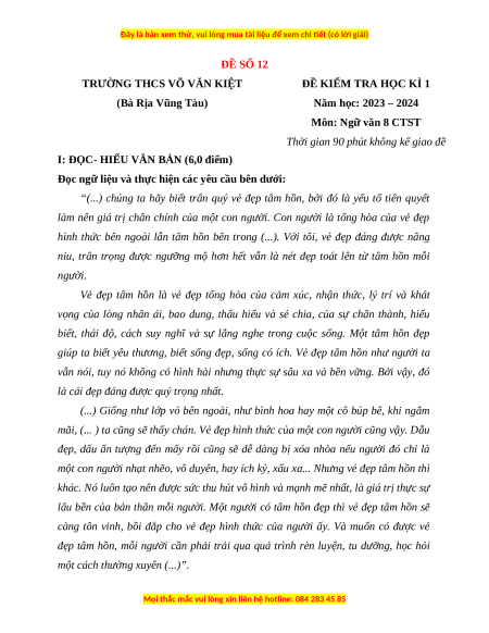 Đề thi cuối kì 1 Ngữ văn 8 Chân trời sáng tạo - Đề 12