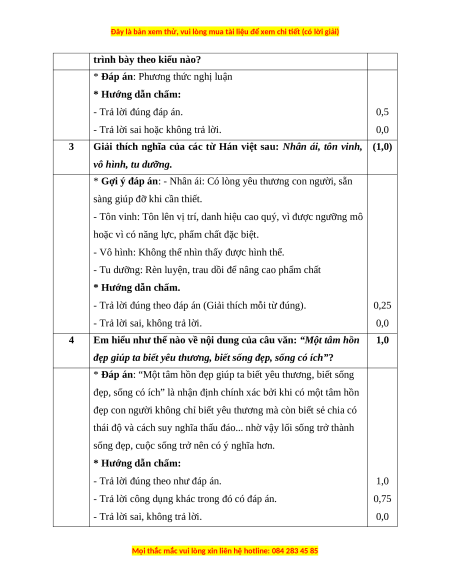 * Hướng dẫn chấm.