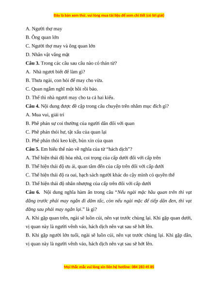 Câu 4. Nội dung được đề cập trong câu chuyện trên nhằm mục đích gì? A. Mua vui, giải trí