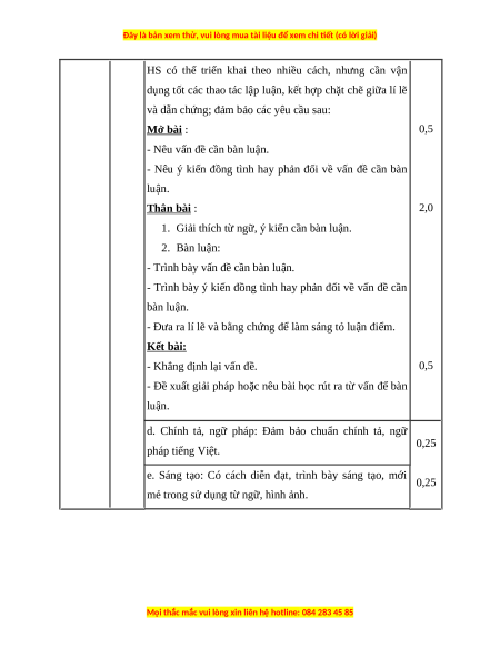Mở bài nêu được vấn đề, Thân bài triển khai được vấn 0,25