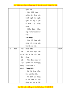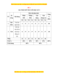 Số câu hỏi theo mức độ nhận dung/ thức Chương/ TT đơn vị Mức độ đánh giá Vận chủ đề Nhận Thông Vận kiến dụng biết hiểu dụng thức cao 1 Đọc hiểu Văn Nhận biết: 2TL bản