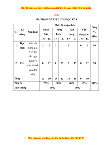 MA TRẬN ĐỀ THI CUỐI HỌC KỲ I