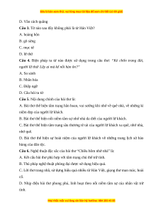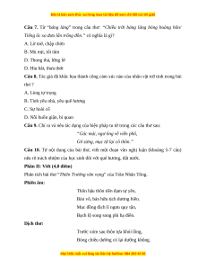 Câu 1. Bài thơ được viết theo thể thơ nào? A. Thất ngôn bát cú B. Thất ngôn tứ tuyệt C. Ngũ ngôn tứ tuyệt D. Song thất lục bát