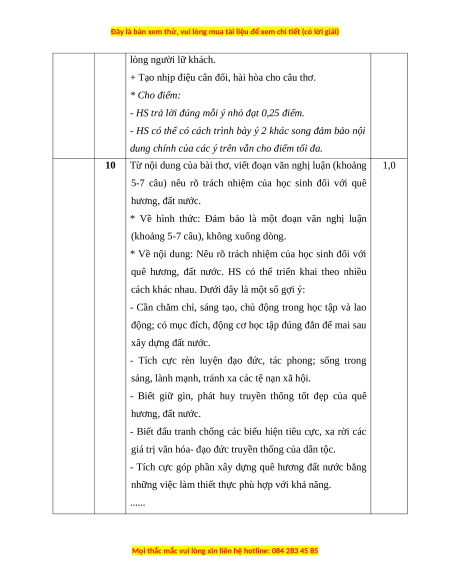 10 Từ nội dung của bài thơ, viết đoạn văn nghị luận (khoảng