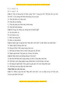 Câu 2. Phép đối trong bài thơ xuất hiện ở những cặp câu nào? A. 1 – 2 và 3 – 4 B. 1 – 2 và 7 – 8