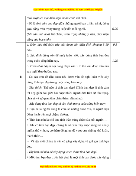 b. Xác định đúng vấn đề nghị luận: việc xây dựng tình bạn đẹp