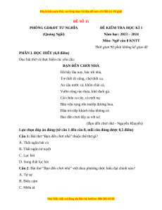 Năm học: 2023 – 2024 Môn: Ngữ văn 8 KNTT