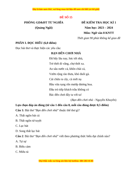 Câu 1: Bài thơ “Bạn đến chơi nhà” thuộc thể thơ gì?