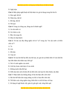 Câu 3: Biện pháp nghệ thuật nổi bật được tác giả sử dụng trong bài thơ là: A. Đảo ngữ, liệt kê B. Nhân hóa, liệt kê C. Đối lập, liệt kê D. Nói quá