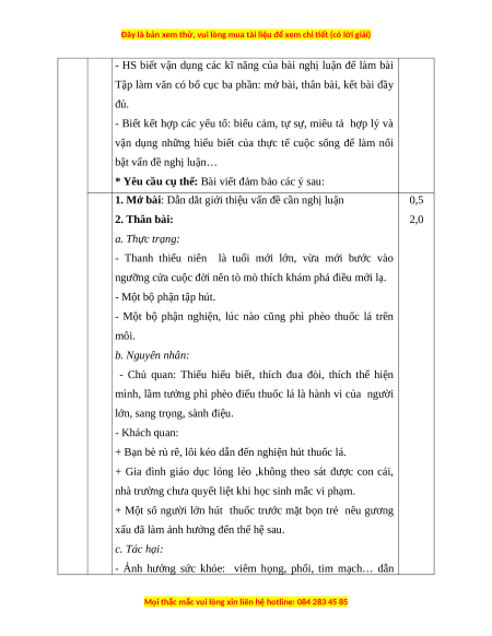 hiện tượng hút thuốc lá, thuốc lá điện tử của thanh thiếu niên 0,25 hiện nay . * Yêu cầu chung: