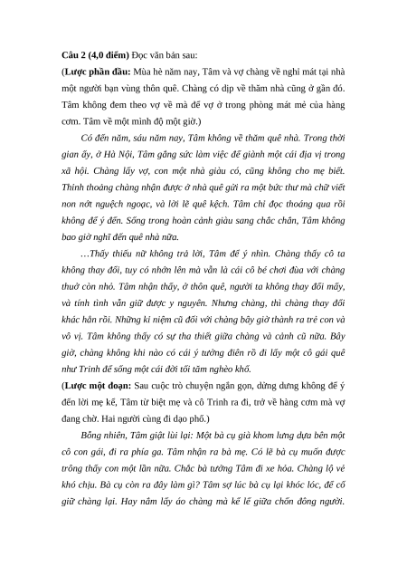 Câu 2 (4,0 điểm) Đọc văn bản sau: