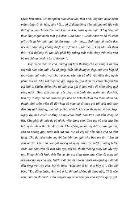làng. Cha âu yếm nhìn vợ, rồi ôm hôn con gái, cha bảo mẹ tôi: “Em và