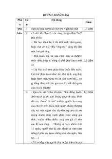Câu 2 (4,0 điểm) Viết bài văn nghị luận phân tích văn bản ở phần đọc hiểu. HƯỚNG DẪN CHẤM Phầ Câ Nội dung Điểm n u Đọc 1