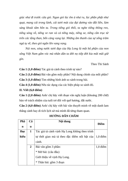 thắng cảnh hay di tích lịch sử mà mình đã từng tham quan. HƯỚNG DẪN CHẤM Phầ Câ Nội dung Điểm n u Đọc 1