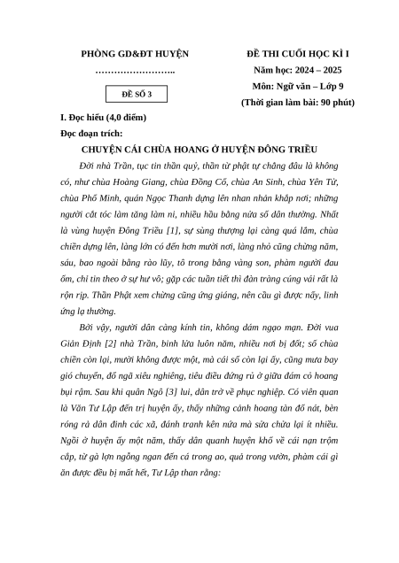 Môn: Ngữ văn – Lớp 9 ĐỀ SỐ 3