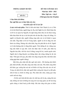 Câu 5 (1,0 điểm) Từ văn bản Người liệt nữ ở An Ấp, em có suy nghĩ, tình