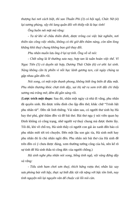 phu nhân mời tới trò chuyện. Đến một lầu son gác tía, Hà sinh mới hay