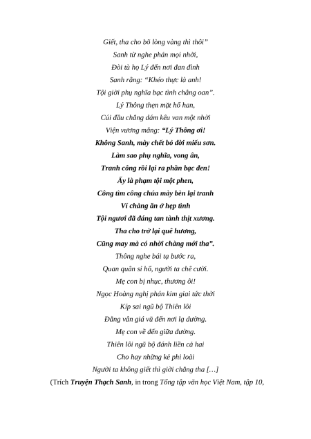 (Trích Truyện Thạch Sanh, in trong Tổng tập văn học Việt Nam, tập 10,