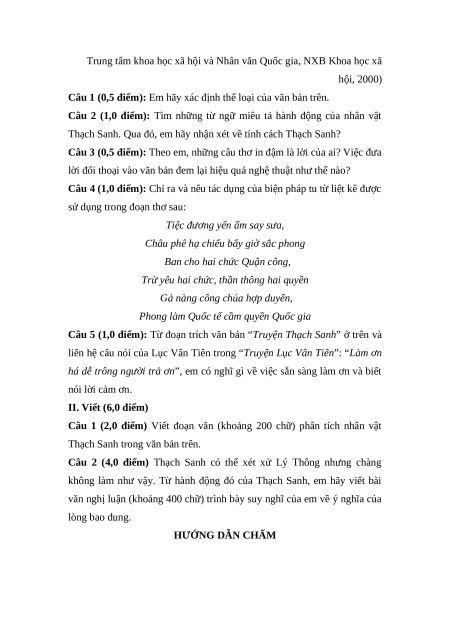 Câu 2 (4,0 điểm) Thạch Sanh có thể xét xử Lý Thông nhưng chàng