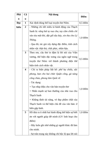 + Tạo nhịp điệu cho văn bản truyện thơ 1,0 điểm