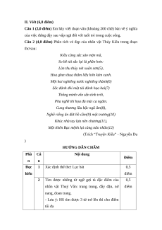 (Trích “Truyện Kiều” - Nguyễn Du ) HƯỚNG DẪN CHẤM Phầ Câ Nội dung Điểm n u Đọc 1