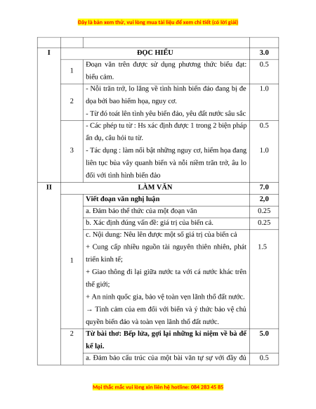 - Các phép tu từ : Hs xác định được 1 trong 2 biện pháp 0.5 ẩn dụ, câu hỏi tu từ. 3