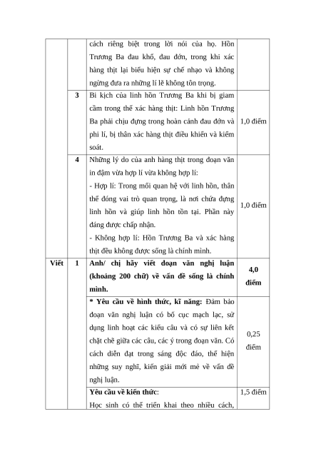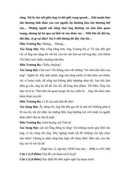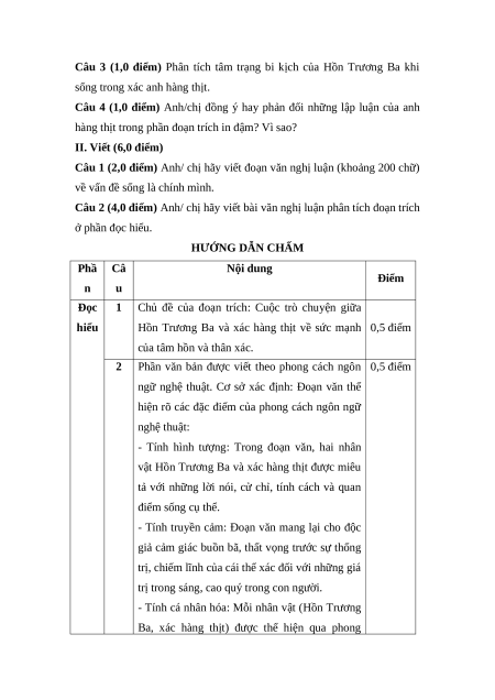 Câu 3 (1,0 điểm) Phân tích tâm trạng bi kịch của Hồn Trương Ba khi