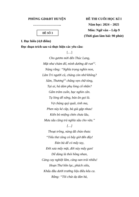 Môn: Ngữ văn – Lớp 9 ĐỀ SỐ 3