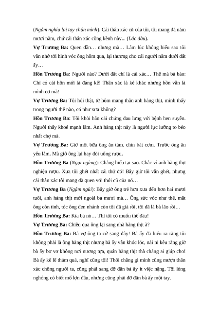 Hồn Trương Ba: Đã khác hẳn trước, phải không? (Rầu rĩ). Bà đã quen