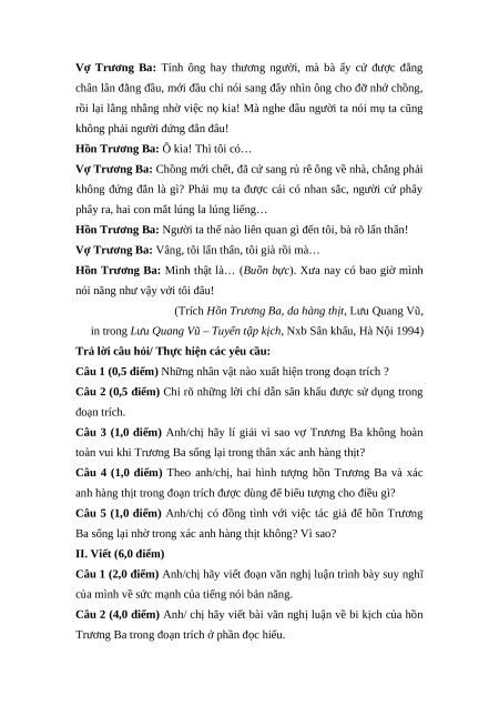 Câu 4 (1,0 điểm) Theo anh/chị, hai hình tượng hồn Trương Ba và xác