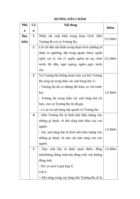 Trương Ba trong đoạn trích ở phần đọc hiểu. HƯỚNG DẪN CHẤM Phầ Câ Nội dung Điểm n u Đọc 1