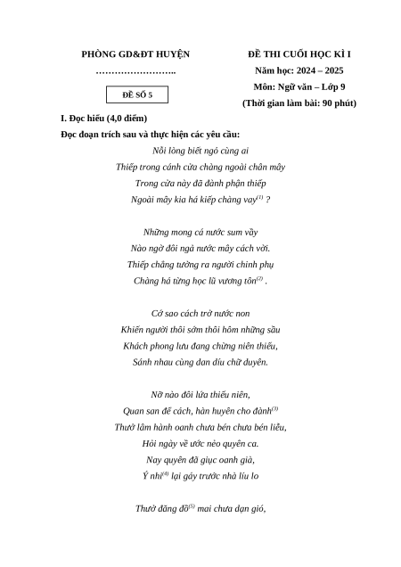 Môn: Ngữ văn – Lớp 9 ĐỀ SỐ 5