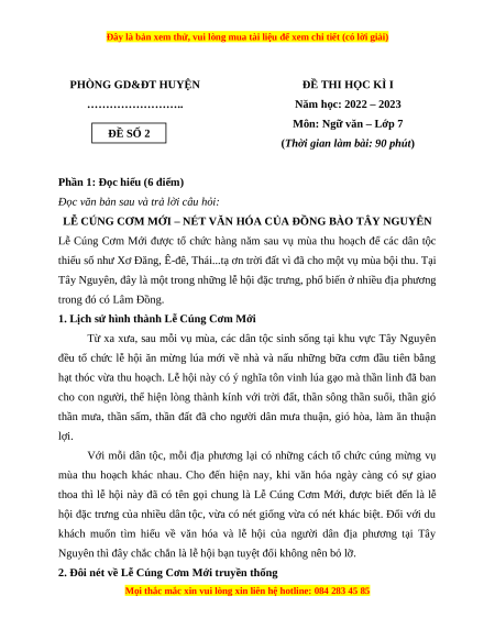 Môn: Ngữ văn – Lớp 7 ĐỀ SỐ 2