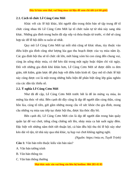 Câu 1 B. Văn bản thông tin 0,5 điểm