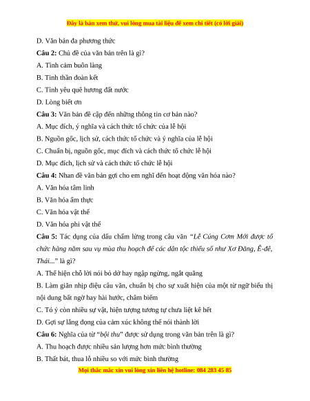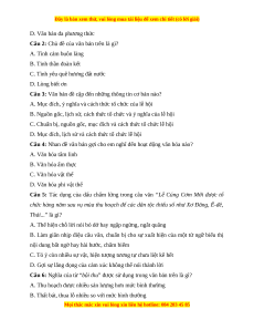 Câu 4: Nhan đề văn bản gợi cho em nghĩ đến hoạt động văn hóa nào? A. Văn hóa tâm linh B. Văn hóa ẩm thực C. Văn hóa vật thể D. Văn hóa phi vật thể