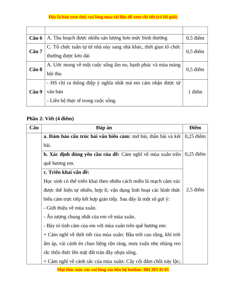 Cảm nghĩ về mùa xuân trên quê hương em. HƯỚNG DẪN CHẤM