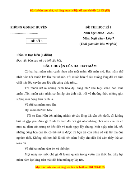 B. Từ câu chuyện hai hạt mầm để khẳng định ý nghĩa của lối Câu 3 0,5 điểm