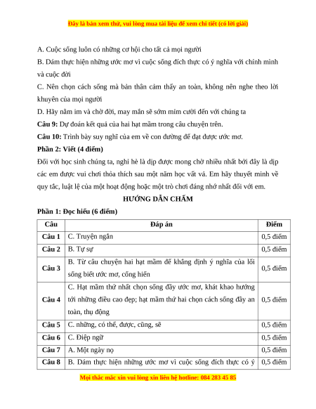 Câu 8 B. Dám thực hiện những ước mơ vì cuộc sống đích thực có ý 0,5 điểm