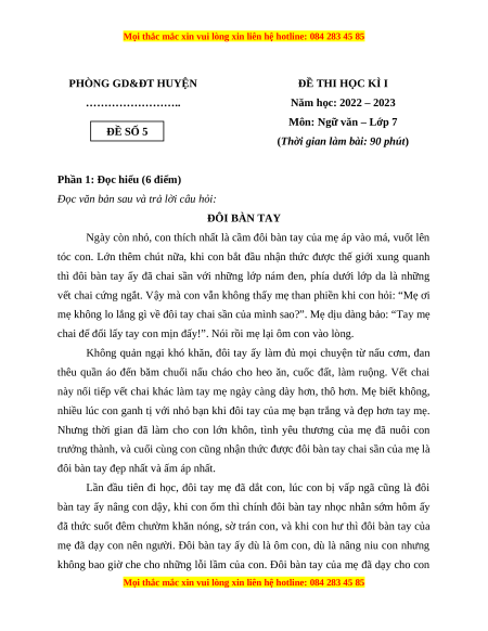 Môn: Ngữ văn – Lớp 7 ĐỀ SỐ 5