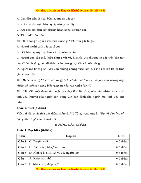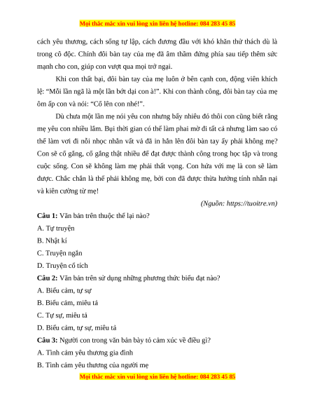 Câu 3 D. Những hi sinh vất vả của người mẹ 0,5 điểm