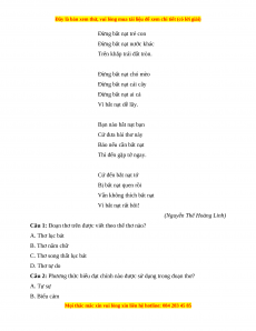 nạt kẻ yếu. Nhà thơ lên tiếng phê phán hành vi bắt nạt, bênh vực Câu 8 0,5 điểm