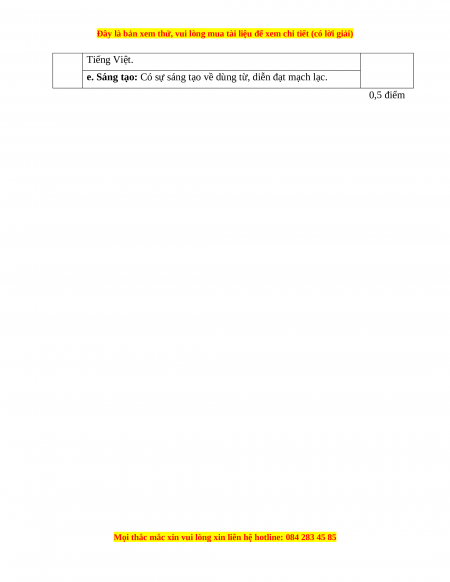 e. Sáng tạo: Có sự sáng tạo về dùng từ, diễn đạt mạch lạc.