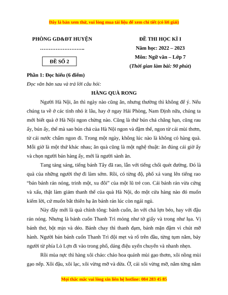Đọc văn bản sau và trả lời câu hỏi: HÀNG QUÀ RONG