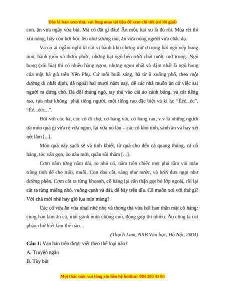 Câu 1: Văn bản trên được viết theo thể loại nào? A. Truyện ngắn B. Tùy bút