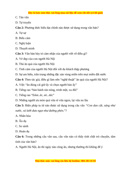 Câu 2: Phương thức biểu đạt chính nào được sử dụng trong văn bản? A. Tự sự B. Biểu cảm C. Nghị luận D. Thuyết minh