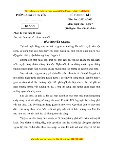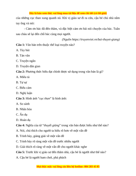 Đọc văn bản sau và trả lời câu hỏi BÀI THUYẾT GIẢNG