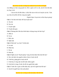 Câu 1: Văn bản trên thuộc thể loại truyện nào? A. Tùy bút B. Tản văn C. Truyện ngắn D. Truyện dân gian